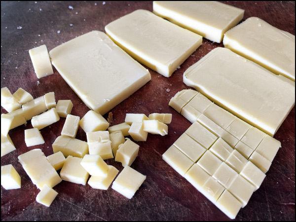 Cut your cold butter into small pieces; the smaller you cut it, the easier it is to mix into dry ingredients.